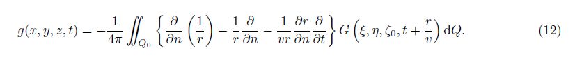 Immigration is the inverse process of data recording. Setting upward waves of the wave field as G $\left( \xi ,\eta ,{{\varsigma }_{0}},t+\frac{r}{v} \right)$, Eq.(10)then can be rewritten as