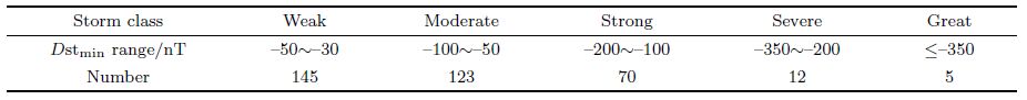 | Table 2 Classification of geomagnetic storm intensity and the total number of different classes of geomagnetic storms of 1996-2008 |