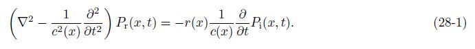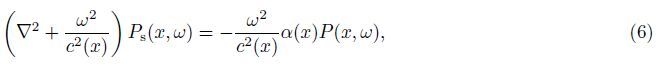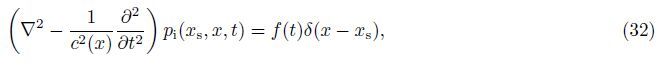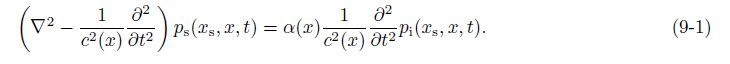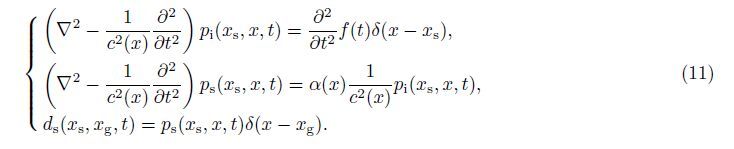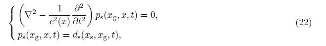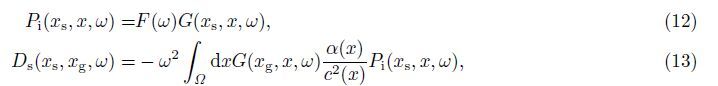 Given background velocity model c (x) ,velocity perturbation α (x) and source wavelet f (t) ,we can simulate scattered wave in the time domain with Eqs. (7-1) and (9-1) ,