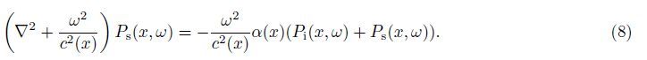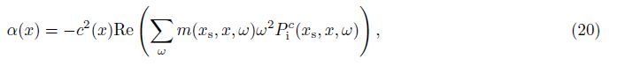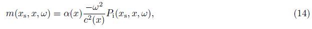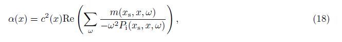 Put themobtained from Eq. (17) and the incident wavefield Pi (xs,x, (ω) ) obtained from Eq. (12) into Eq. (14) to gain the evaluation of velocity perturbation α (x) ,