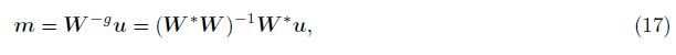 We replace the least square generalized inverse matrix W-g with its adjoint matrix W* to ensure the stability of numerical computation and reduce computational complexity in Eqs. (17) and (18) ,