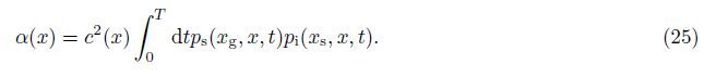 Eqs. (12) , (19) and (20) together constitute the approximate solution of velocity perturbation α (x) ,which in essence is the migration image of α (x) . Thus in time domain,the migration calculation of α (x) is,