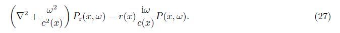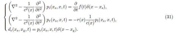 Given background velocity model c (x) ,reflectivity distribution function r (x) and source function f (t) ,primary reflected wave simulation can be done with Eqs. (7) and (28) as follows