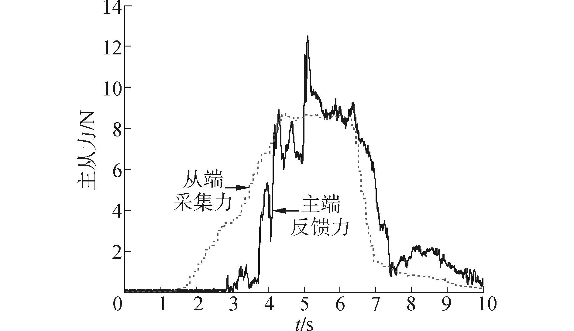 | 图15 断骨接触时主从力曲线 Figure 15 Master-slave force tracking of broken bones contact |