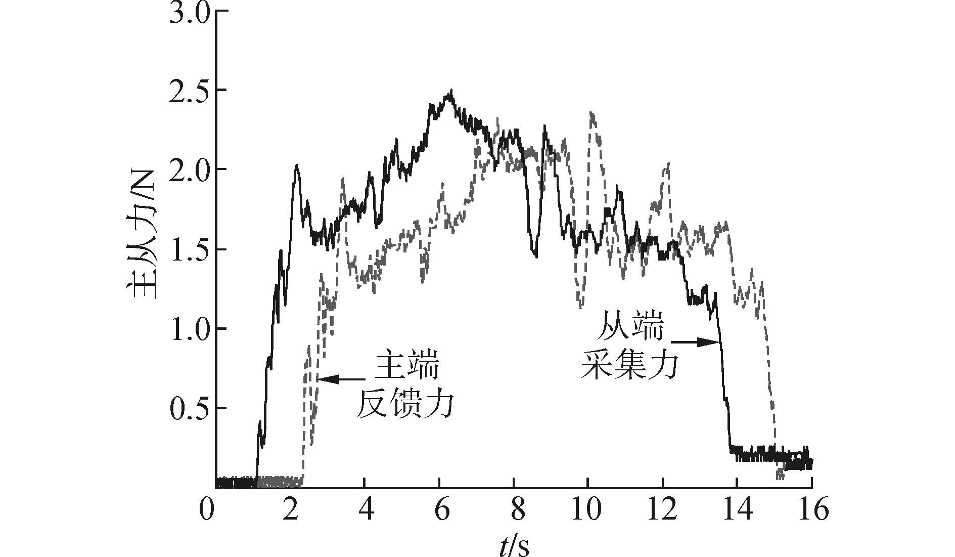 | 图16 拉伸动作下主从力曲线 Figure 16 Master-slave force of stretch traction |