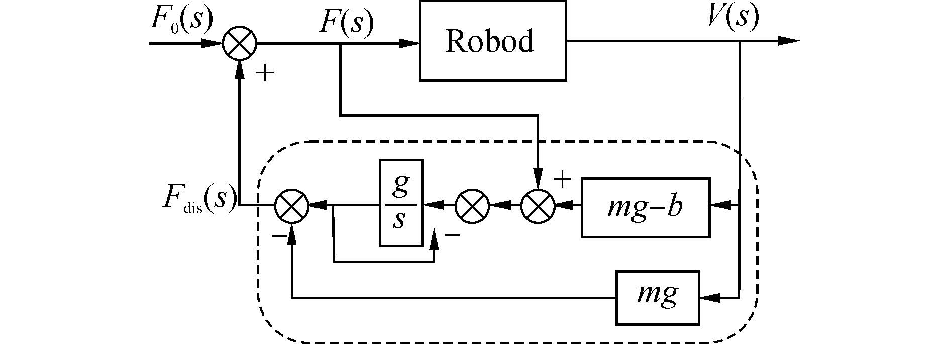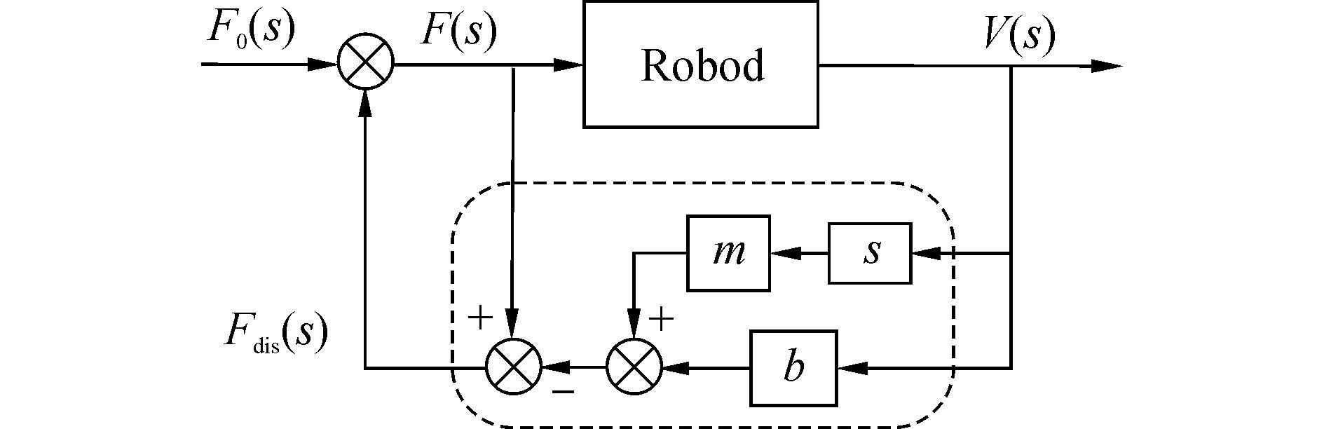 | ${{{\hat{F}}}_{dis}}(s)=Q(s)\left[ F(s)-(\tilde{m}sV(s)+\tilde{b}V(s)) \right]$ | (6) |