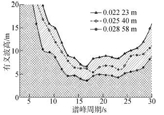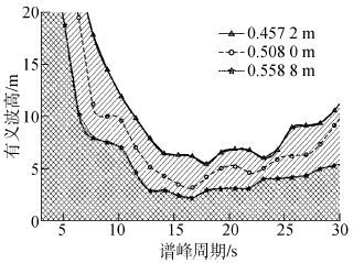 3.3 立管结构对作业窗口的影响立管结构对J型铺设作业窗口的影响主要体现在管径和壁厚,以波高-周期作业窗口作如下分析。