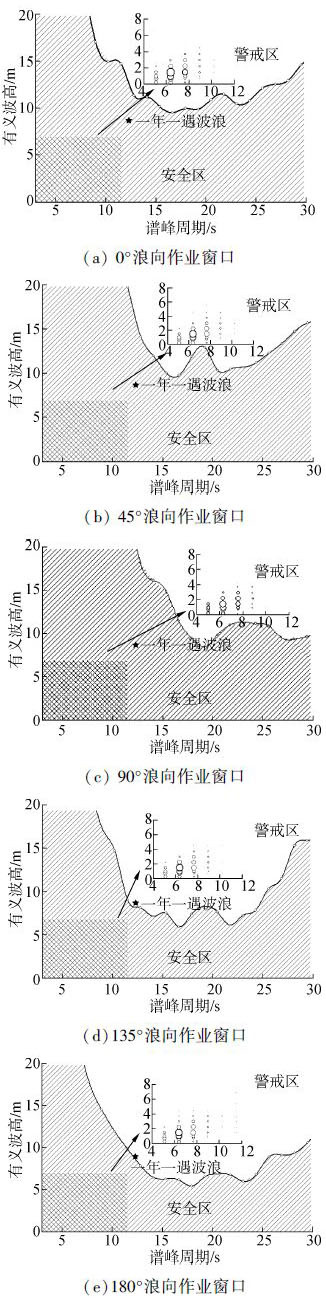 | 图7 各浪向下作业窗口 Fig.7 Operability envelopes under different wave directions |