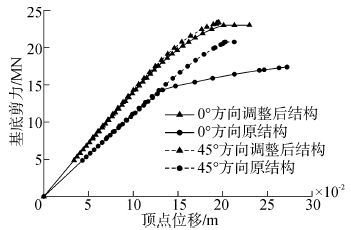 | 图11 调整后结构基底剪力与顶点位移 Fig.11 Base shear-roof displacement curves of adjusted structure |