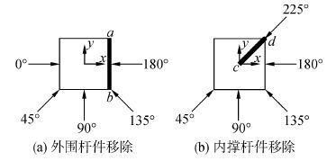 4)得到完好结构在45°和90°方向的RSR指标和移除构件后结构在图3载荷工况下的DSR指标,以各方向下求得的构件重要性系数最大值作为该移除构件的重要性指标。