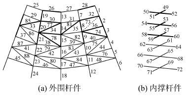 | 图2 平台侧面展开图及杆件编号 Fig.2 Flank figure of platform and number of members |