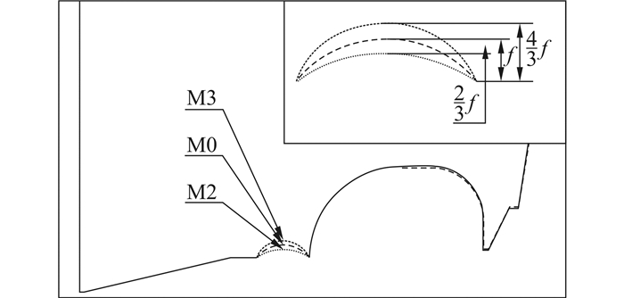 | 图 11 M0、M2、M3模型剖面形式对比 Fig. 11 Cross section comparison of M0,M2 and M3 |