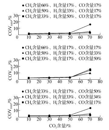 | 图6 CO2含量及燃料组分变化对COVIMEP的影响 Fig.6 Influence of CO2 content and fuel components on COVIMEP |