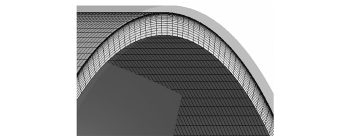 | 图7 常规泵喷整体网格与叶稍间隙附近网格 Figure 7 Meshes of mechanical pumpjet and grid between rotor tip and inner wall of duct |