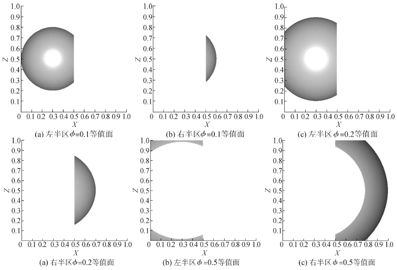 | 图6 不同φ值等值面(圆球) Figure 6 Isosurfaces at different φ value (sphere) |