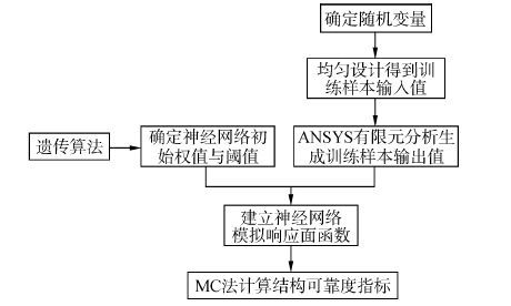 1)据随机变量统计特性,采用均匀设计方法生成神经网络初始训练样本输入值;建立基本的结构功能函数,通过结构计算分析程序生成初始训练样本点响应值;