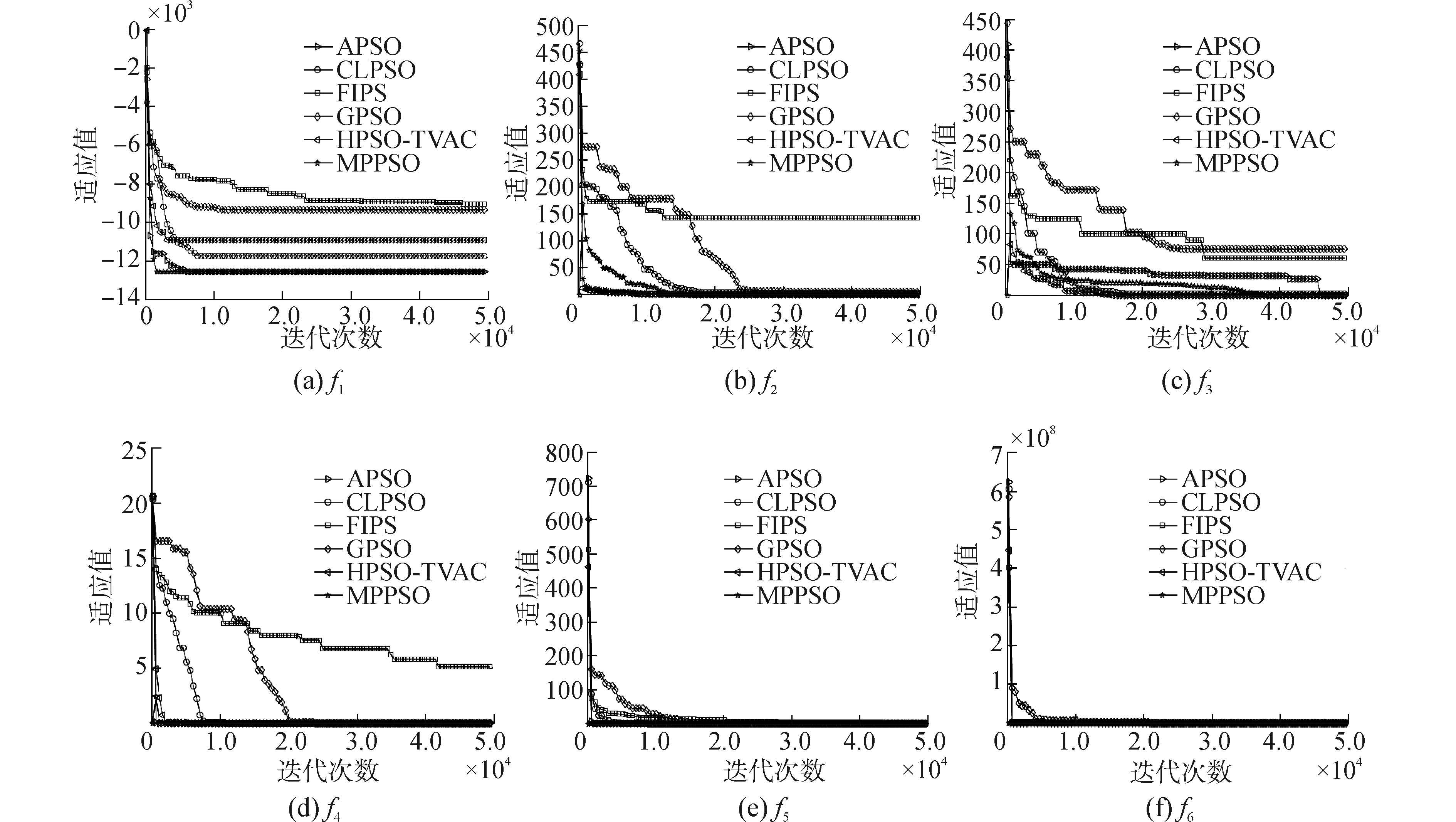 | 图1 6个函数的收敛曲线 (MPPSO) Figure 1 Convergence curves of 6 functions (MPPSO) |