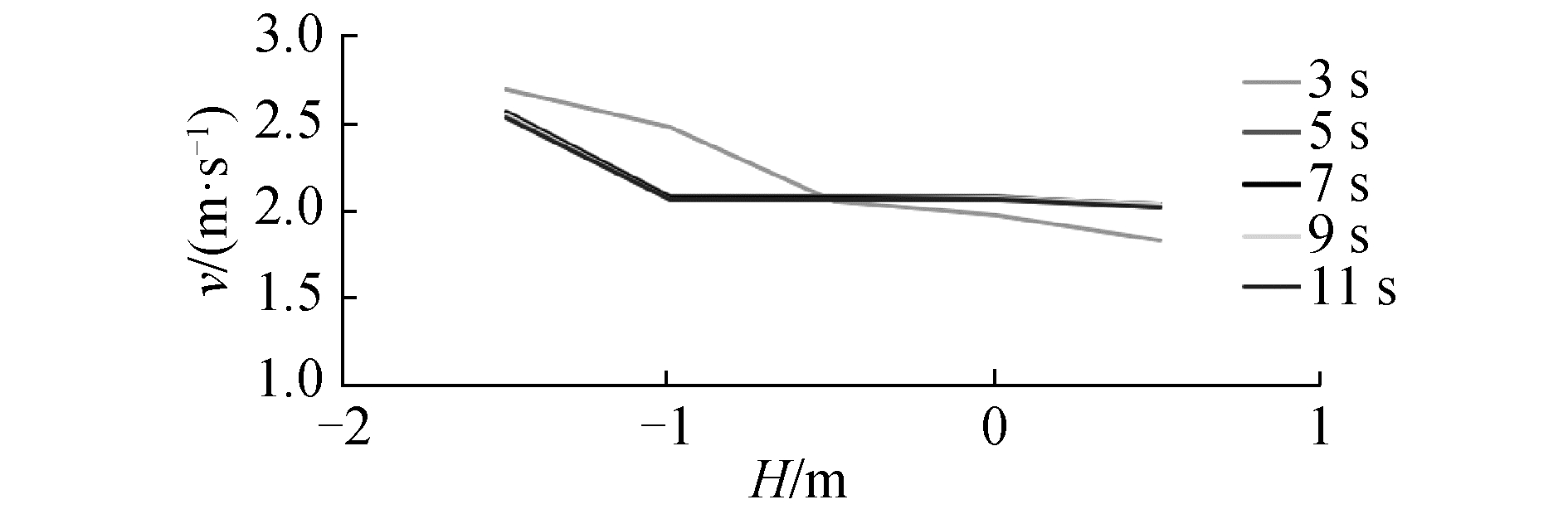 前3 s的速度随破口高度的降低而增大,当-1≤H≤0.5时:5 s后速度值不随高度而变化,-1.5 m高案例的进水速度比其他高度的速度大。