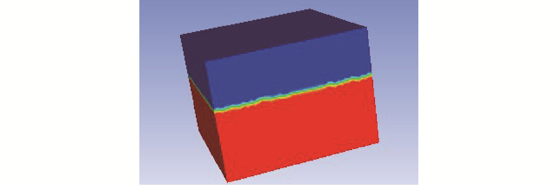 对模型进行网格划分,导入fluent软件:设置瞬态计算,重力方向为Y轴,利用VOF技术捕捉水气交界面[15],明渠流动技术保证计算过程中外界流场的稳定性。利用Patch技术完成初始流场的填充,初始流场分布如图 3。