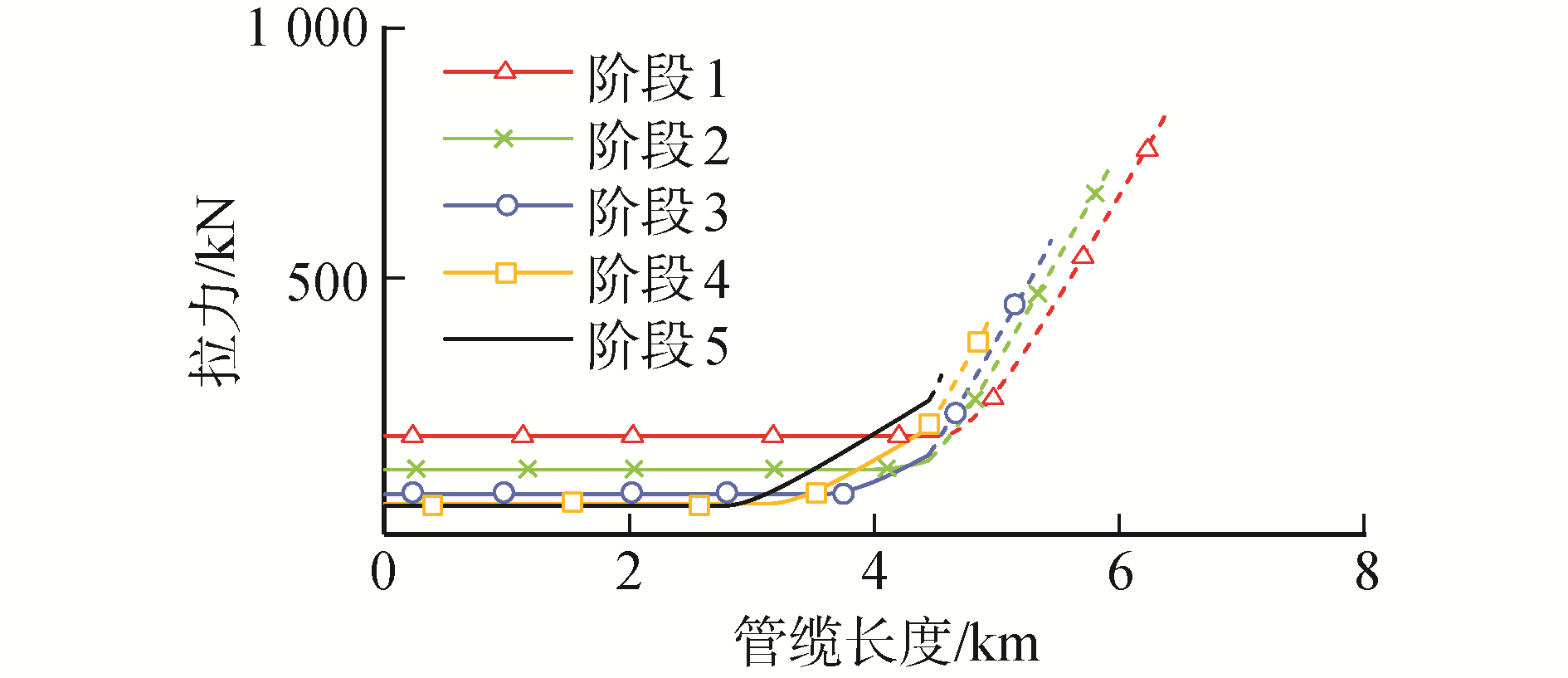 | 表 5 各阶段下顶张力 Table 5 The top tension of each step |