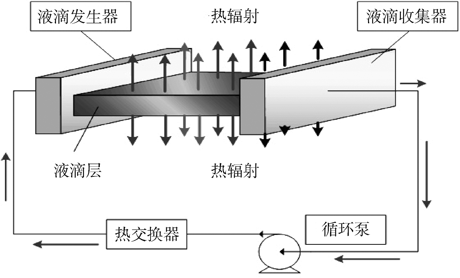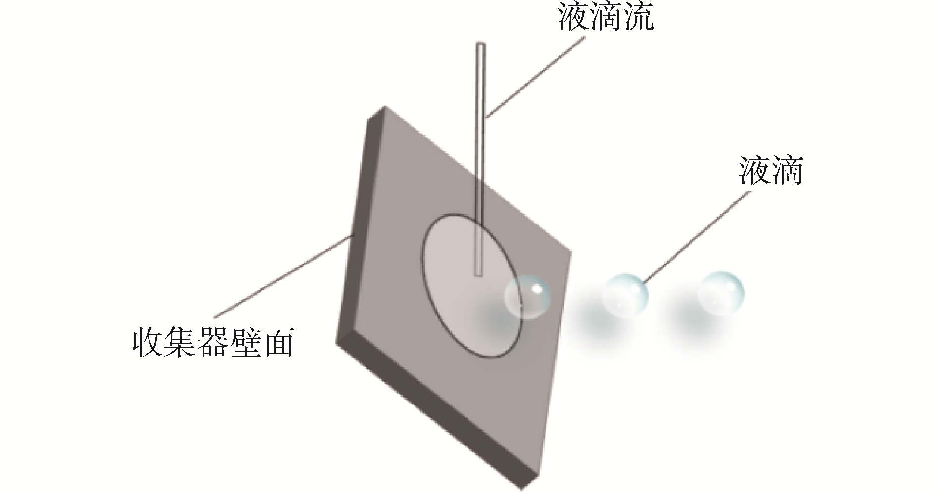 大多数液滴碰撞研究都是针对水滴的研究,其他种类流体撞击壁面的研究比较少,特别是对于无重力的条件下液滴撞击壁面的研究更少。Kong等[4]研究了液滴以不同速度撞击亲水-疏水和超亲水-超疏水界面的演化过程,结果表明,当液滴与亲水-疏水界面碰撞时,相邻的两个极端润湿性表面将产生液滴扩散的驱动力。液滴会在超亲水区域完全扩散,对液滴扩散过程的能量分析表明,液滴动能与表面能的相互转换是液滴运动和扩散的关键;Tsuyoshi等[5-6]在微重力条件下进行了液滴流碰撞实验。使用2个电荷耦合器件相机(索尼公司XC-75和XC-7500)拍摄了液滴流的收敛方面和碰撞后的液滴行为,利用铝板模拟收集器的一侧,单条液滴流以35°入射角撞击铝板,液滴速度为16 m/s,出入射液滴不均匀性会影响液滴流的收敛性,产生明显飞溅现象,降低收集效率;White等[7]实验表明,液滴损失的主要原因不是液滴的反弹,而是小于入射液滴的次级液滴由于波浪脱落而造成的。液滴流在收集器表面形成液膜,并在膜表面产生波浪,次级液滴从这些波峰中释放出来,造成损失;Taussig等[8]研究了普通表面,带网孔的表面以及布置有紧密排列平行小槽的表面,利用液滴流群冲击板面,液滴速度为8 m/s和18 m/s,适当网孔大小的表面可以大大减小液滴的飞溅损失。