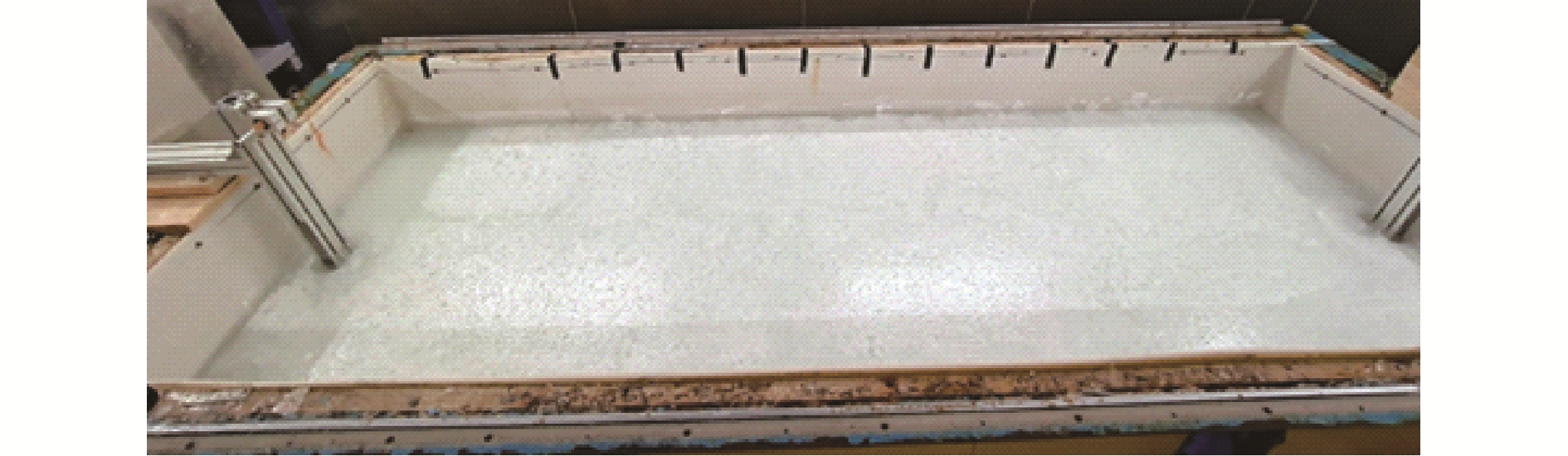 低温实验室内部设有小型冰水池,如图 1所示。水池内表面长296 cm,宽115 cm,高82 cm,水池2条短边上设置平台,可供安放设备。