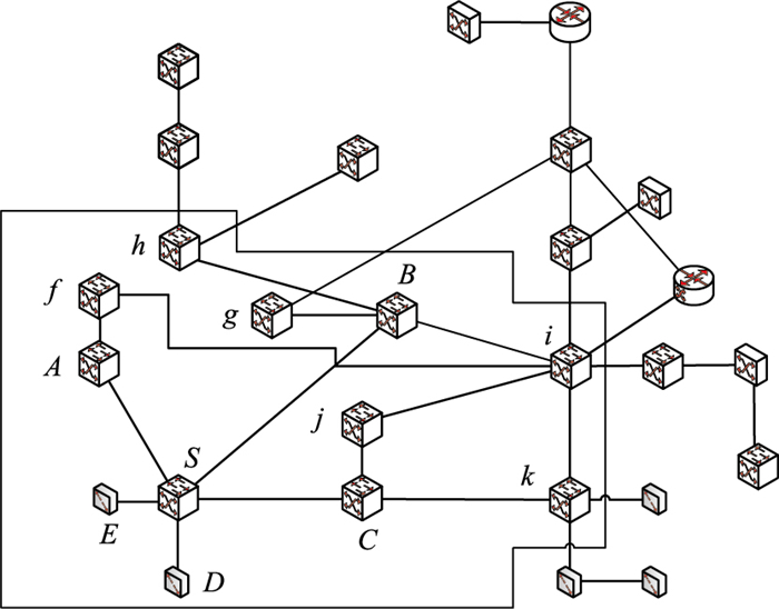 开放最短路径优先(Open Shortest Path First, OSPF)协议在电力信息网中得到了广泛的应用。在大规模的部署OSPF的网络中,网络拓扑会被划分成多个区域。当节点需要向所在区域外的目的地发送数据包时,需要首先将数据包发送到合适的边界路由器,并由边界路由器负责向区域外传输。作为不同区域间沟通的桥梁,边界路由器往往承载着大量的网络流量,一旦发生故障将对整个网络造成严重的影响。原始的OSPF算法的区域划分算法有较大的改进空间,已有的工作[2-4]主要集中在如何根据实际需求对基于OSPF的网络进行更合理的区域划分。然而这些算法并不能从根本上解决边界路由器容易成为网络瓶颈的问题,不能很好地实现负载均衡。