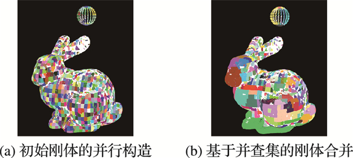 基于并查集的合并方法,将具有运动一致性的小刚体合并,提高了动态数据压缩比。而且并查集合并的复杂度为O(1),可实现并行构造的小刚体的快速合并。