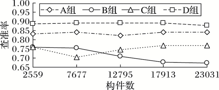 图 4 不同构件库规模的查全率比较 Figure 4 Recall ratio comparison of different scale of component libraries |