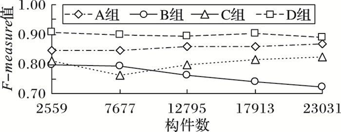 图 5 不同构件库规模的F-measure值比较 Figure 5 F-measure comparison of different scale of component libraries |