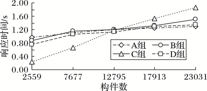 图 6 不同构件库规模的查询响应时间比较 Figure 6 Query response time comparison of different scale of component libraries |