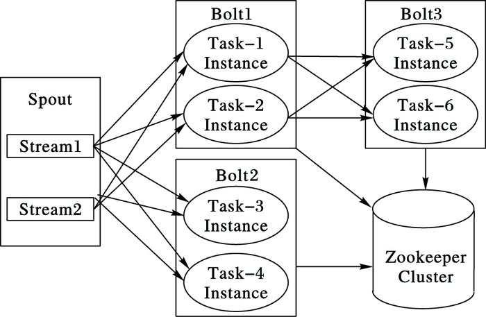 图 4 Storm内部处理逻辑图 Figure 4 Storm internal processing logic diagram |