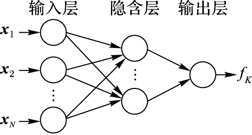 | ${{f}_{K}}\left( \mathit{\boldsymbol{x}} \right)=\sum\limits_{j=1}^{K}{{{\mathit{\boldsymbol{ }}\!\!\beta\!\!\rm{ }}_{j}}}{{g}_{j}}\left( {{\mathit{\boldsymbol{x}}}_{i}} \right)=\sum\limits_{j=1}^{K}{{{\mathit{\boldsymbol{ }}\!\!\beta\!\!\rm{ }}_{j}}}g\left( {{\mathit{\boldsymbol{a}}}_{j}}\cdot {{\mathit{\boldsymbol{x}}}_{i}}+{{b}_{j}} \right)$ | (1) |