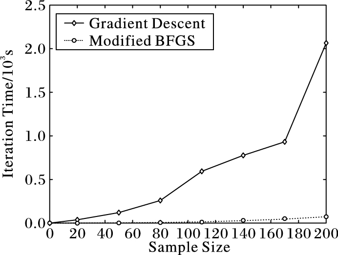 图 2 修正BFGS算法与梯度下降法迭代时间比较 Figure 2 Iteration time comparison between modified BFGS algorithm and gradient descent method |