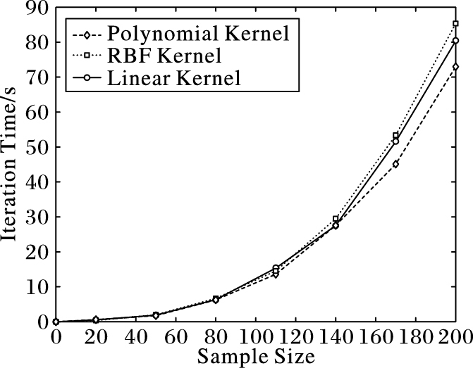 图 5 修正BFGS算法在不同核函数下的迭代时间 Figure 5 Iteration time of modified BFGS algorithm under different kernel functions |