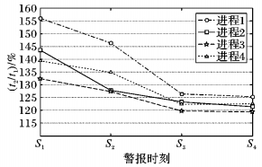 对多个进程进行上述实验得到图 8。图 8中:S1~S4为发生警报的4个相对时间, 满足S1 < S2 < S3 < S4, 且S1~S4均在进程运行时间段内。