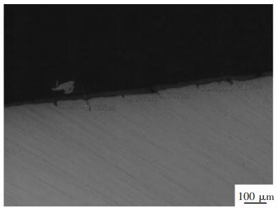 图 13 微裂纹簇开裂对应母材微裂纹(100倍) |