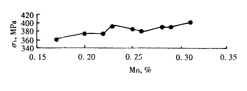 为了探索Q195L主要化学成分(C, Si, Mn)与强度(σb)的关系, 对某一时段Q195L的有关生产数据进行收集和统计, 处理结果见图 1、图 2、图 3。从图 1~3可见, 随着钢中碳、硅、锰的降低, Q195L盘条的抗拉强度随之降低。