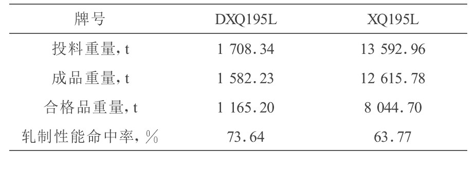 表 4 DXQ195L与XQ195L轧制情况对比 |