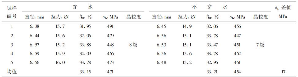 表 7 Q215盘条穿水与不穿水性能和晶粒度的比较 |