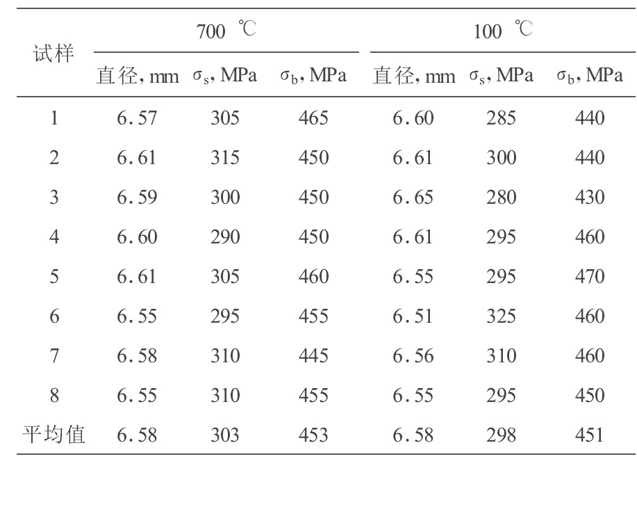 4.2.2 不同取样温度性能对比试验鉴于模拟试验结果(即热轧盘条试样经300 ℃退火处理后, σb明显下降), 研究小组认为, 热轧成品盘条的实际强度可能会低于试样的强度。因为通常Q195L的取样温度在700 ℃左右, 取样后放在地上空冷, 而成品盘条是成卷堆冷。为此, 研究小组在现场先按通常取样方法取8个样(每卷一个样), 然后待这8卷盘条冷却至100 ℃左右时, 再取8个样, 测其强度。试验结果见表 8。