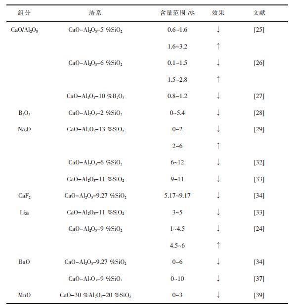 | 表 1 组分对非反应型保护渣结晶性能的影响 |