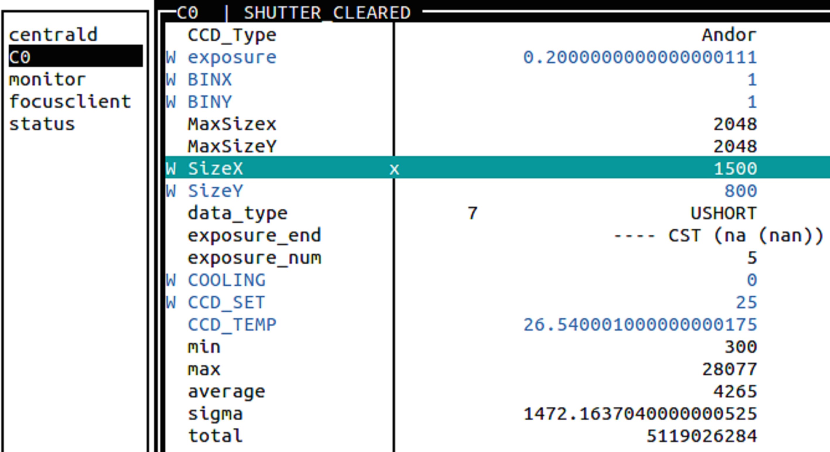 3 成像控制软件的实现基于RTS2和EPICS,完成了具有自主控制功能的成像控制软件的构架、设计和实现,并使用Andor iKon-L相机进行了测试。在RTS2的NMonitor组件中成功实现对Andor相机的控制,如图 7。