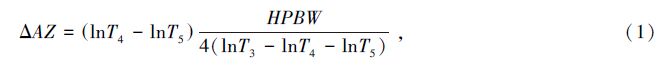 上述两式中,ΔAZ和ΔEL分别表示在观测射电源时,方位和俯仰方向相对源的偏离,T3~T7分别表示五点扫描时5个状态下天线的温度,即观测得到的幅度,HPBW表示半功率束宽(本文中HPBW=0.056°)。