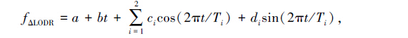 其中, T1和T2 分别表示周年项和半周年项的振荡周期,本文取 T1=365.24 d、 T2=182.62 d; a和b 表示长期趋势项参数; c1和d1 表示周年项参数; c2和d2 表示半周年项参数。这6个未知参数可以通过最小二乘法求得。