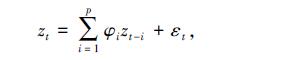 1.3 自回归模型自回归模型是对平稳时间序列{ zt,t=1,2,…,n }建立的一个概率统计模型,它根据变量自身过去的变化规律来建立预报模型,其数学模型为