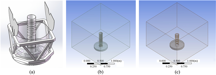 | 图 4 (a)原始模型;(b) CFD简化模型(有遮光筒);(c)独立挡光环 Figure 4 (a) Original model; (b) CFD simplified model with baffle; (c) CFD simplified model with vanes |