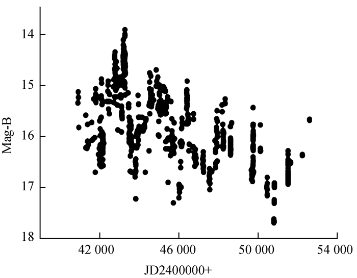 | 图 1 PKS 0735+178在B波段的光变曲线 Figure 1 The light curve of quasar PKS 0735+178 in B band |
