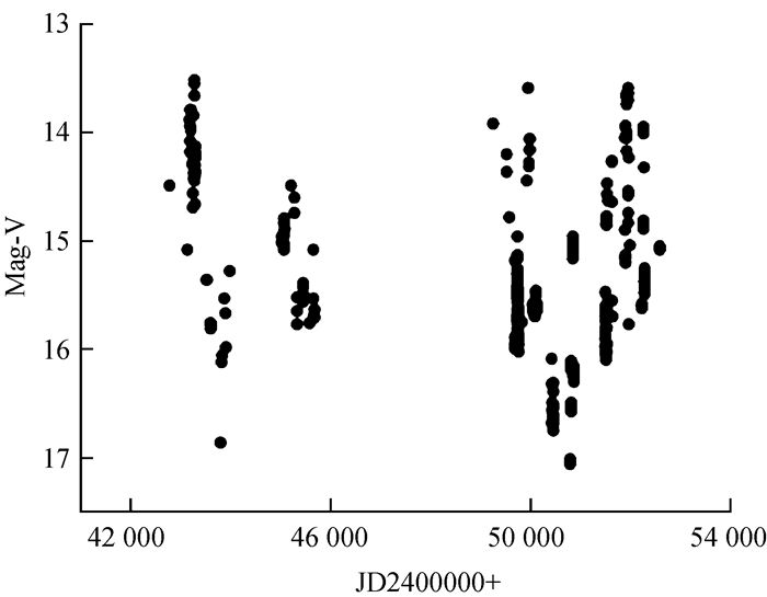 | 图 2 PKS 0735+178在V波段的光变曲线 Figure 2 The light curve of quasar PKS 0735+178 in V band |