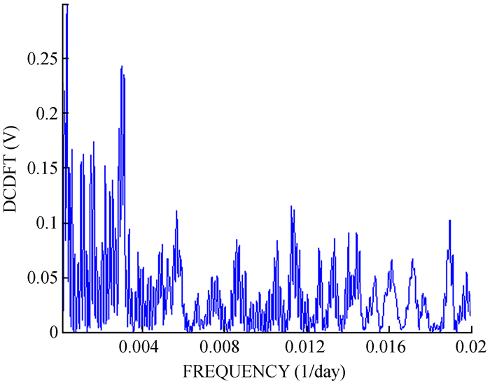 | 图 4 时间补偿离散傅里叶变换法分析PKS 0735+178的V波段周期 Figure 4 DCDFT method analysis of the variability period of PKS 0735+178 in V band |
